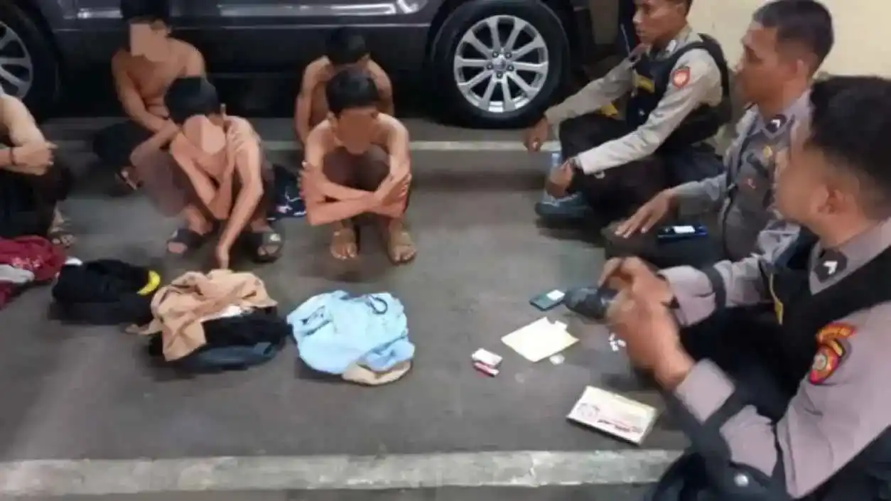 Polisi mengamankan enam orang dengan inisial IS (16), WA (15), ED (17), MI (13), RR (19), dan AL (15) untuk menjalani pemeriksaan di kantor polisi.