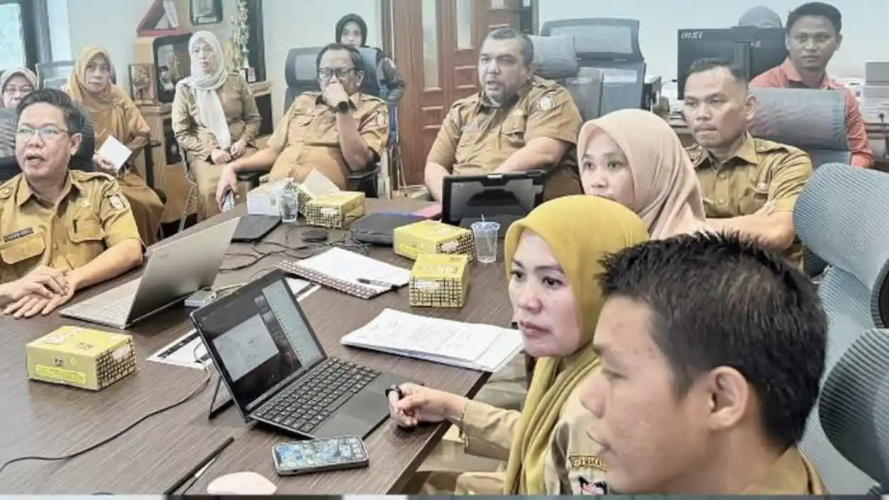 Kepala Badan Pengelolaan Keuangan dan Aset Daerah Kota Makassar memimpin langsung jajaran BPKAD mengikuti sesi Live-Testing Katalog Elektronik versi 6. Sejumlah pejabat struktural dan staf pengelola keuangan tampak memenuhi Ruang Rapat Kepala BPKAD di Gedung Balai Kota lantai 2, sementara peserta lain bergabung secara daring melalui aplikasi Zoom Meeting.