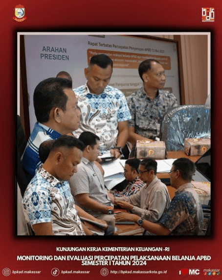 SULSELTIMES.COM Makassar, 4 Juli 2024 – Kementerian Keuangan Republik Indonesia (Kemenkeu) menggelar Monitoring dan Evaluasi (Monev) terkait percepatan penyerapan realisasi anggaran Semester I Tahun 2024. Dalam evaluasi tersebut, Pemerintah Kota Makassar melalui Badan Pengelola Keuangan dan Aset Daerah (BPKAD) diminta untuk mengoptimalkan pengelolaan keuangan daerah guna memastikan realisasi anggaran APBD 2024 sesuai dengan harapan.