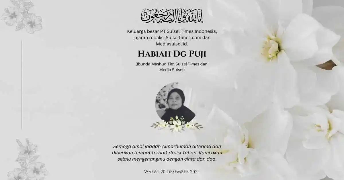 Sulseltimes.com Makassar, Sabtu 20/12/2025 — Kabar duka menyelimuti keluarga besar redaksi Sulseltimes.com dan Mediasulsel.id. Ibunda dari Mashud, salah satu anggota tim redaksi, dikabarkan wafat pada Sabtu, 20 Desember 2025.