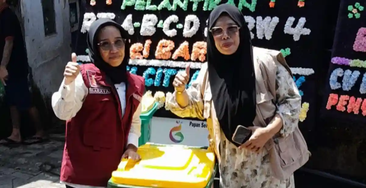 Penyerahan bantuan tempat sampah gratis dilakukan Ninik Faulatin Harun kepada perwakilan warga RT 02 RW 04 Kelurahan Baraya pada Senin, 29/12/2025.